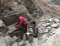 Geophysical seismic refraction survey at Trishuli Galchhi Hydroelectric Project.